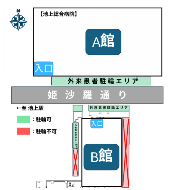 当院へ自転車でお越しの方は、外来患者専用駐輪エリアをご利用ください。