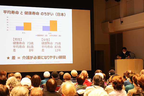 当日は会場内が満席になるほど多くの方々にお越し頂きました。地域住民の方々の健康意識の高さを再認識し、今後もよりよい講演にしていきたいと思います。